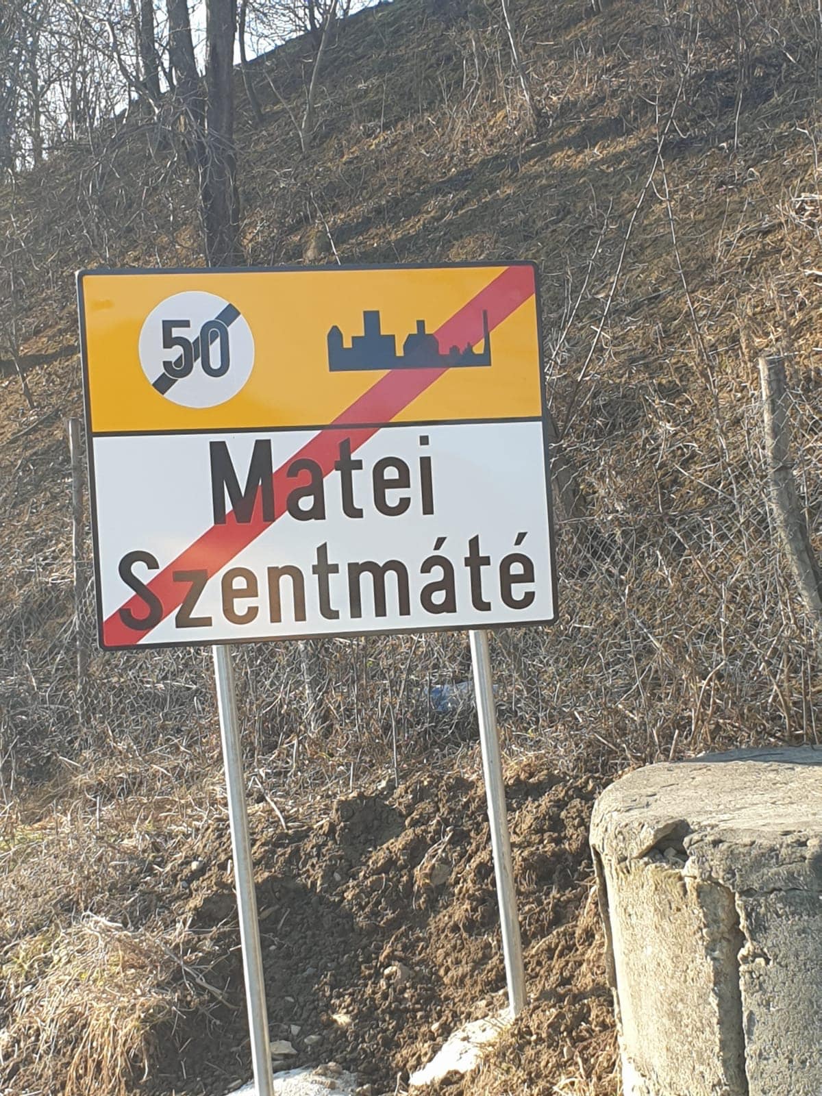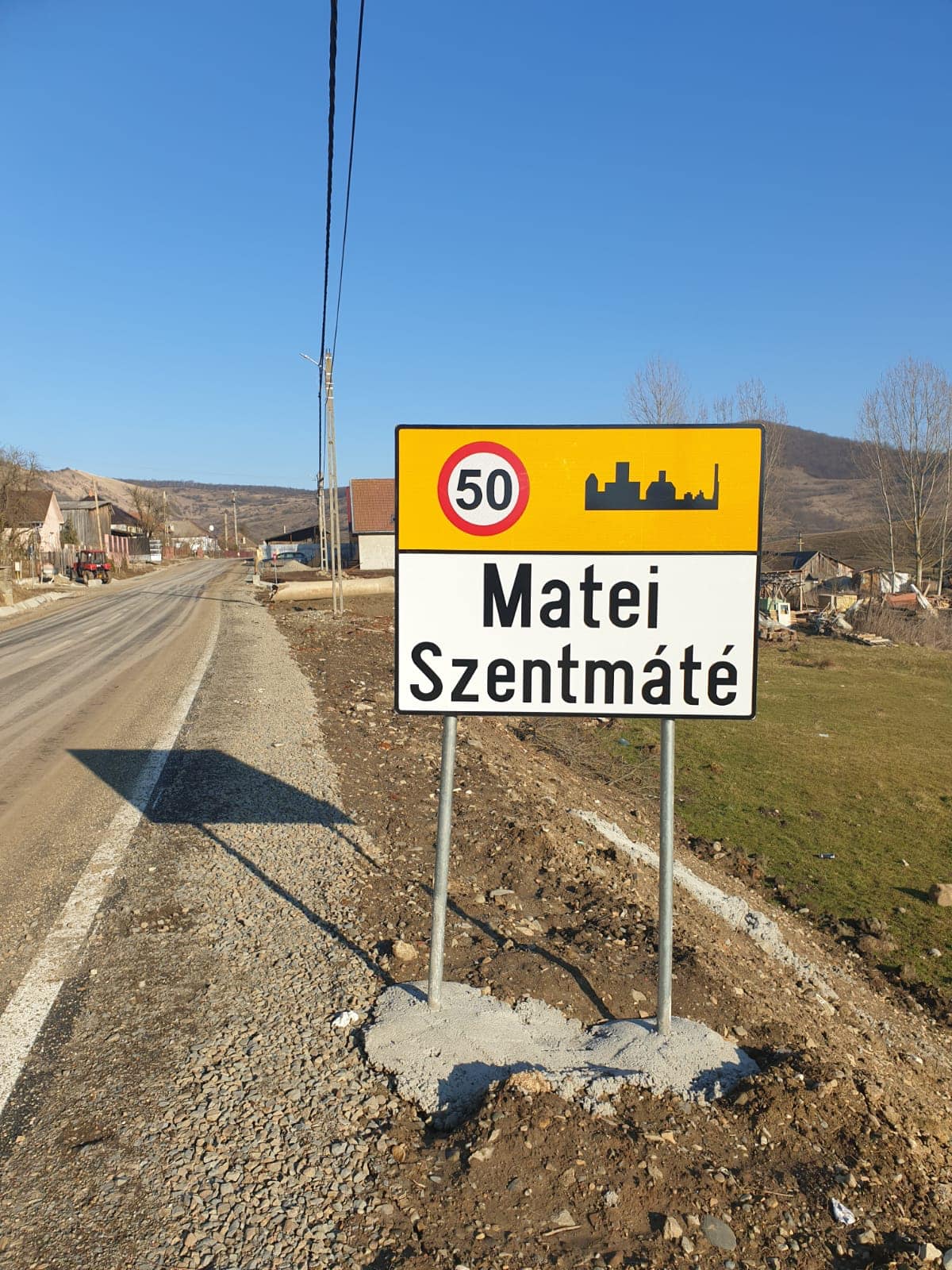Leszerelték a kétnyelvű helységnévtáblákat a 2019-2020 között zajló útburkolat javító munkálatok során, a 172E jelzésű megyei útszakaszon (DJ172E), Szentmáté és Mezőveresegyháza között. Az idei átadásnál viszont, csak egynyelvű helyiségnévtáblákat helyeztek vissza. Ezt a mulasztást Décsei Atilla, az RMDSZ Beszterce-Naszód megyei szervezetének elnöke vette észre, aki az érintett települések RMDSZ elnökeivel egyeztetve, azonnal intézkedett ezügyben.